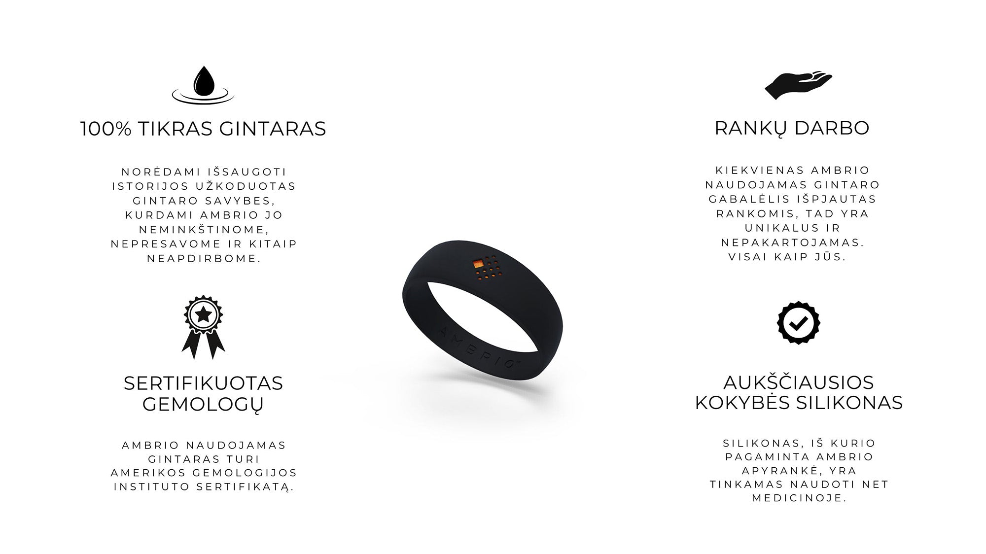 AMBRIO- tai stilinga apyrankė, kurios paslaptis - 100 proc. grynumo Baltijos gintaras. Tik jam būdingas teigiamas savybes įvilkome į aukščiausios kokybės silikono rūbą, kurį sukonstravome taip, kad gintaras švelniai liestųsi prie jūsų odos. Tikrai yra apyrankių, skaičiuojančių žingsnius ir stebinčių miegą, bet nešančios sėkmę ir įkvepiančios teigiamos energijos apyrankės dar nebuvo...Iki šiol.